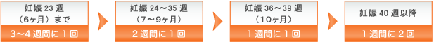 以降の妊婦健診は、下の図のようになり、毎回血圧、体重測定、尿検査があります。